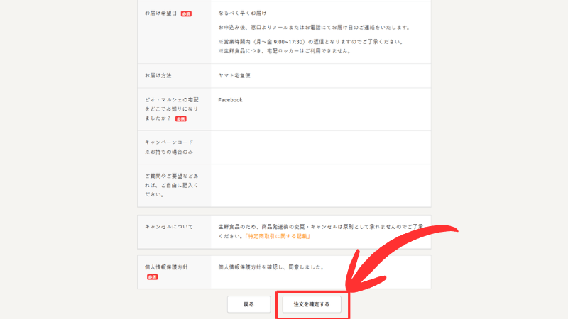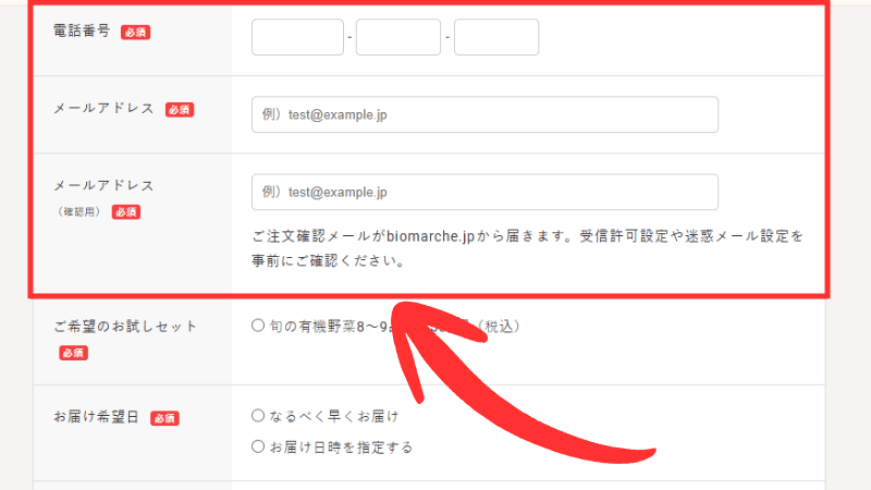 これで、注文確認メールが届いたらビオマルシェのお試しセットのお申し込みは完了です。