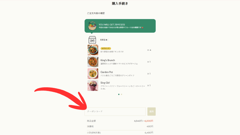 グリーンスプーンの注文方法はシンプルでわかりやすいですが、クーポンコードの入力欄は注文途中に表示されるため、気づかないまま進んでしまう方も多いんです。