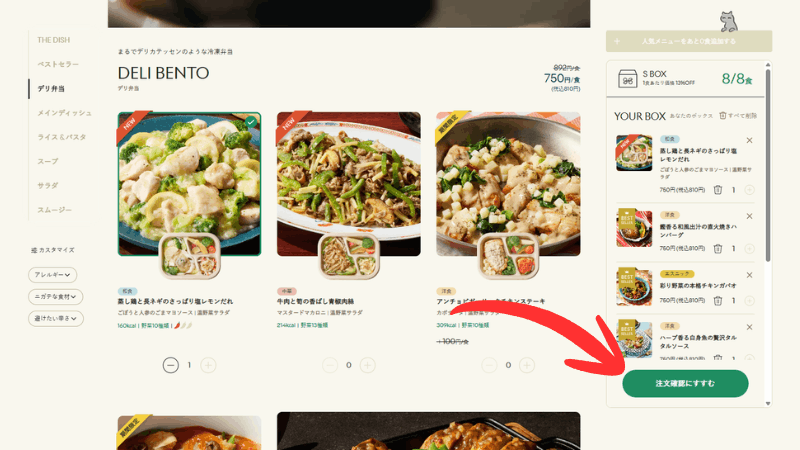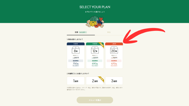 対象はSBOX(8食)・MBOX(12食)・LBOX(20食)すべてのプラン。