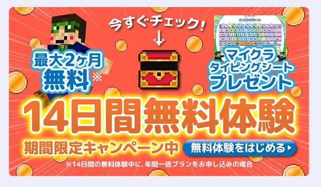 また、今ならマイクラ仕様のタイピングシートがもらえます。