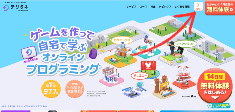 - デジタネ公式サイト右上の「ログイン」ボタンをクリック