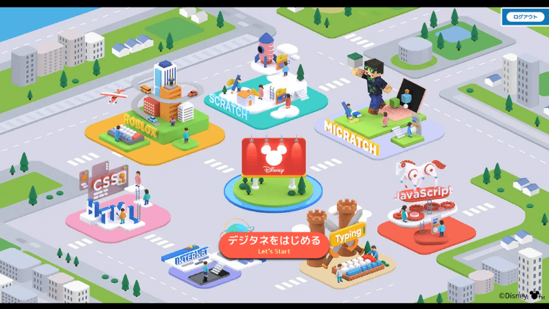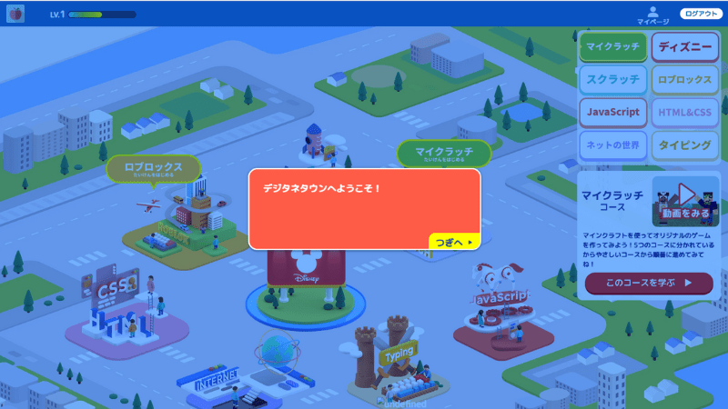 ディズニーキャラクターと一緒に物語を進めながら学ぶコースです。