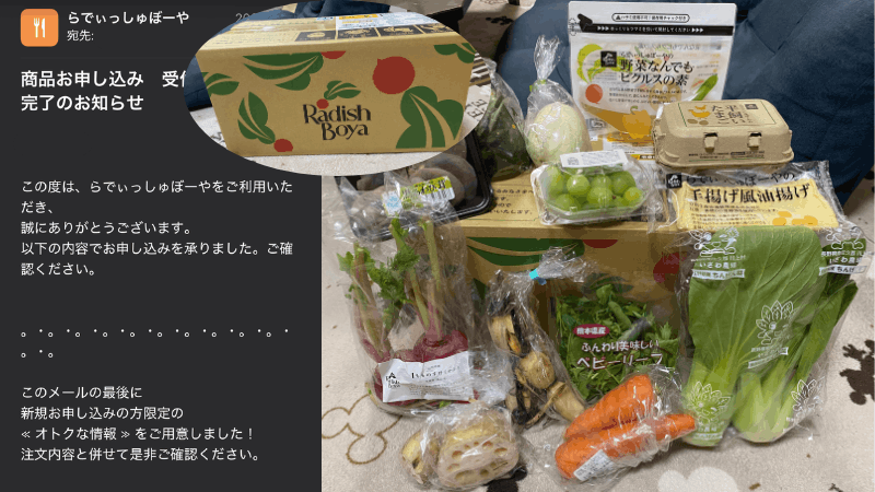 実際に体験した勧誘の有無やメール内容については、「らでぃっしゅぼーやお試し後の勧誘はしつこい?」で解説しています。