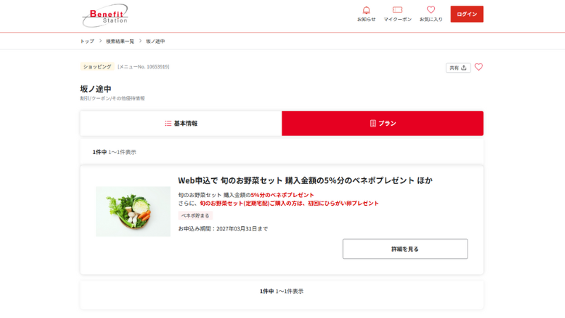 ベネフィットステーション経由で坂ノ途中を利用すると、